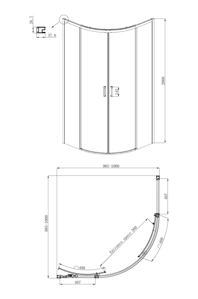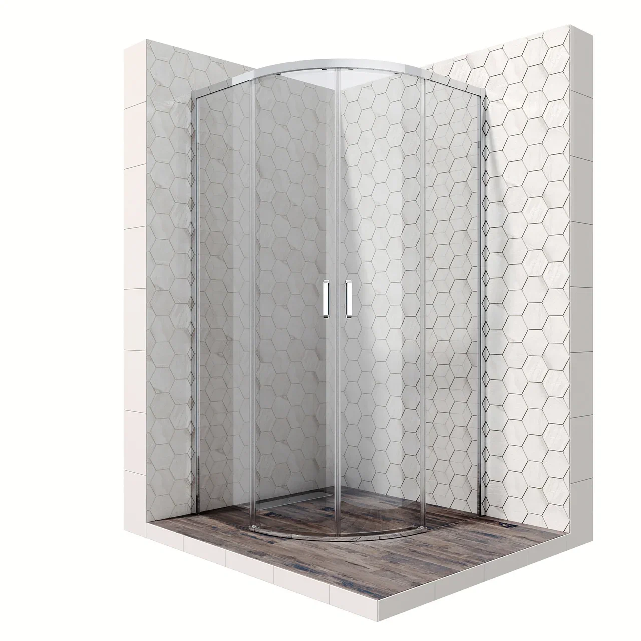 Душевой уголок Roxen Santi с прозрачными стеклами – полукруглое душевое ограждение с раздвижными дверями. Прочный профиль изготовлен из анодированного термостойкого