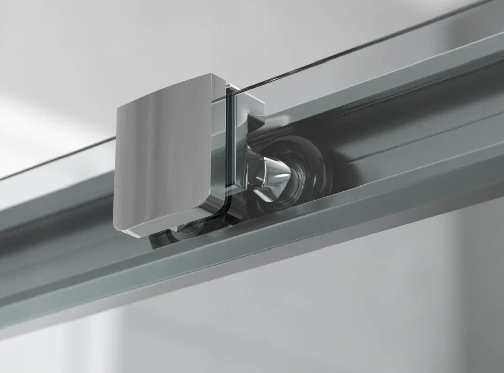 Усовершенствованный механизм деталей обеспечивает не только тихий ход дверей, но и простой уход за всеми элементами изделия. Раздвижные двери функционируют за счет колесиков и нержавеющих подшипников, которые передвигаются в специальных пазах. Механизм роликов препятствует заеданию и перекосу его подвижных частей. Легким нажатием створки можно отклонить или полностью вынуть, таким образом произвести генеральную уборку ограждения и тяжелодоступных мест душевого пространства.