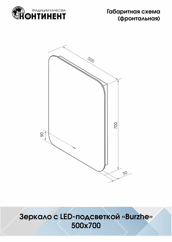 Зеркало с подсветкой Burzhe 500х700 с бесконтактным сенсором, холодная подсветка – это настенное зеркало нового поколения, изготовленное из полотна толщиной 4 мм. При изготовлении используется светодиодная лента с плотностью диодов 120 шт/м и мощностью 9,6 Вт/м, обеспечивающая яркое и равномерное свечение. Burzhe 500х700 с бесконтактным сенсором, холодная подсветка – это прямоугольное зеркало для ванной шириной 50 см, высотой 70 см. Вес зеркала с упаковкой – 4,4 кг. Для управления подсветкой используется бесконтактный cенсор. Температура ореольной подсветки холодная – 6000К, потребляемая мощность 21 Вт. Основа для изделия – корпус из МДФ-рамки. Срок гарантии – 2 года.