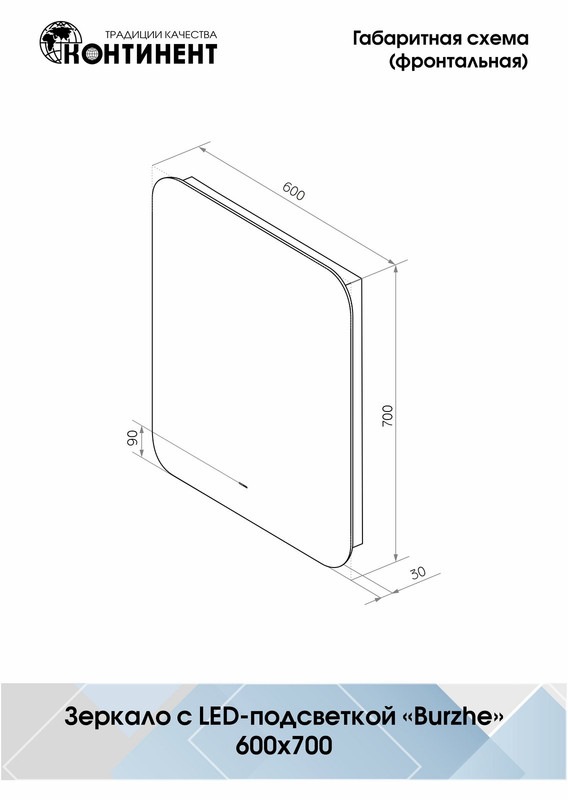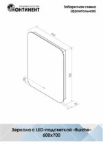 Continent Зеркало с подсветкой Burzhe 600×700 бесконтактный сенсор овальный, открытая подсветка