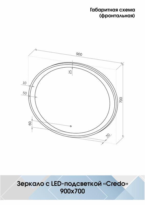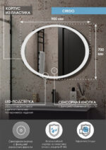 Зеркало с подсветкой “Credo Led” 900х700 – это настенное зеркало нового поколения, изготовленное из полотна толщиной 4 мм от ведущего европейского производителя AGC. При изготовлении используется светодиодная лента с плотностью диодов 120 шт/м и мощностью 9,6 Вт/м, обеспечивающая яркое и равномерное свечение. “Credo Led” 900х700 – это овальное зеркало для ванной шириной 90 см, высотой 70 см. Вес зеркала с упаковкой – 7 кг. Для управления подсветкой используется cенсор. Температура внутренней подсветки холодная – 6000К, потребляемая мощность 29 Вт. Основа для изделия – корпус из ударопрочного пластика белого цвета. Срок гарантии – 2 года.