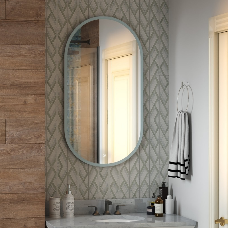 Зеркало с подсветкой “Delight Led” 550х1000 – это настенное зеркало нового поколения, изготовленное из полотна толщиной 4 мм от ведущего европейского производителя AGC. При изготовлении используется светодиодная лента с плотностью диодов 120 шт/м и мощностью 9,6 Вт/м, обеспечивающая яркое и равномерное свечение. “Delight Led” 550х1000 – это овальное зеркало для ванной шириной 55 см, высотой 100 см. Вес зеркала с упаковкой – 8 кг. Для управления подсветкой используется cенсор. Температура внутренней подсветки холодная – 6000К, потребляемая мощность 28 Вт. Основа для изделия – корпус из ударопрочного пластика белого цвета. Срок гарантии – 2 года.