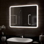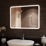 Прямоугольное настенное зеркало нового поколения с холодной подсветкой, часами и антизапотеванием для ванной комнаты, изготовленное из зеркального полотна толщиной 4 мм. При изготовлении используется светодиодная лента с плотностью диодов 120 шт/м и мощностью 9,6 Вт/м, обеспечивающая яркое и равномерное свечение. Температура внутренней подсветки – 6000К. Основа для изделия – корпус из ударопрочного пластика белого цвета. Срок гарантии – 2 года.