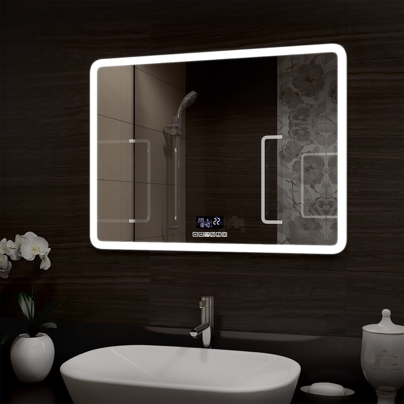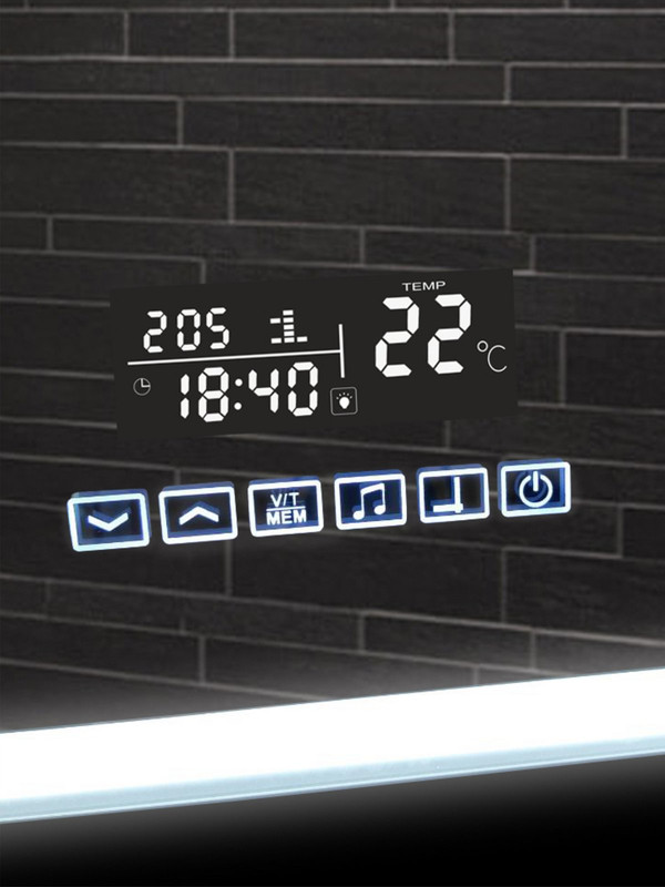 Зеркало с подсветкой и многофункциональной панелью (МФП) Demure – это прямоугольное настенное зеркало нового поколения для ванных комнат, изготовленное из полотна толщиной 4 мм. При изготовлении используется светодиодная лента с плотностью диодов 120 шт/м и мощностью 9,6 Вт/м, обеспечивающая яркое и равномерное свечение. Температура внутренней подсветки холодная – 6000К. Основа для изделия – корпус из ударопрочного пластика белого цвета. Срок гарантии – 2 года.