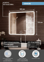 Continent Зеркало с подсветкой Demure 800×700 антизапотевание