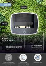 Зеркало с подсветкой “Dream Led” 900х700 – это настенное зеркало нового поколения, изготовленное из полотна толщиной 4 мм от ведущего европейского производителя AGC. При изготовлении используется светодиодная лента с плотностью диодов 120 шт/м и мощностью 9,6 Вт/м, обеспечивающая яркое и равномерное свечение. “Dream Led” 900х700 – это фигурное зеркало для ванной шириной 90 см, высотой 70 см. Вес зеркала с упаковкой – 8,68 кг. Для управления подсветкой используется cенсор. Температура ореольной подсветки холодная – 6000К, потребляемая мощность 29 Вт. Основа для изделия – корпус из ударопрочного пластика белого цвета. Срок гарантии – 2 года.