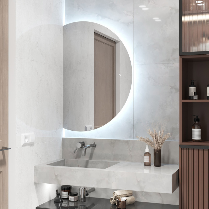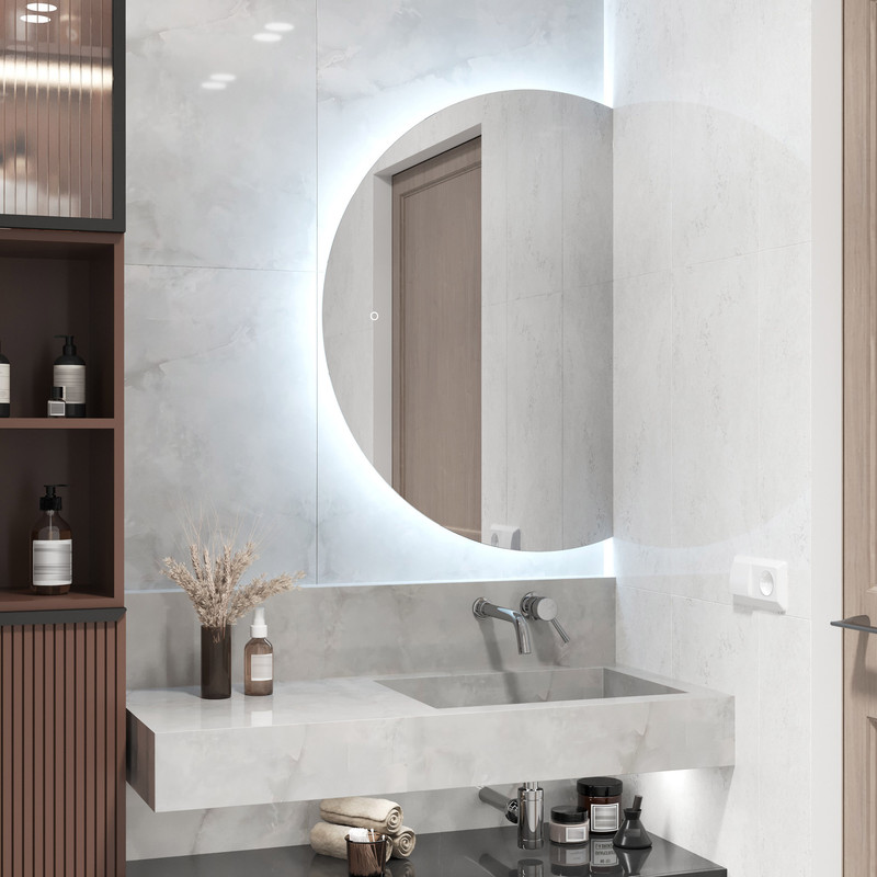 Зеркало с подсветкой “Jill Led” 600х900 – это настенное зеркало нового поколения, изготовленное из полотна толщиной 4 мм от ведущего европейского производителя AGC. При изготовлении используется светодиодная лента с плотностью диодов 120 шт/м и мощностью 9,6 Вт/м, обеспечивающая яркое и равномерное свечение. “Jill Led” 600х900 – это фигурное зеркало для ванной шириной 60 см, высотой 80 см. Вес зеркала с упаковкой – 7 кг. Для управления подсветкой используется cенсор. Температура ореольной подсветки холодная – 6000К, потребляемая мощность 36 Вт. Основа для изделия – корпус из ударопрочного пластика белого цвета. Срок гарантии – 2 года.