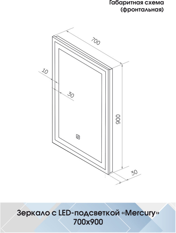 Зеркало с подсветкой Mercury 700×900 – это настенное зеркало нового поколения, изготовленное из полотна толщиной 4 мм. При изготовлении используется светодиодная лента с плотностью диодов 120 шт/м и мощностью 9,6 Вт/м, обеспечивающая яркое и равномерное свечение. Mercury 700×900 – это прямоугольное зеркало для ванной шириной 70 см, высотой 90 см. Вес зеркала с упаковкой – 9,2 кг. Для управления подсветкой используется cенсор. Температура внутренней подсветки холодная – 6000К, потребляемая мощность 29 Вт. Основа для изделия – корпус из ударопрочного пластика белого цвета. Срок гарантии – 2 года.