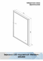 Continent Зеркало с подсветкой Meridian Black 600х800 открыт.подсв., бс (в углу под 45°), реверс.