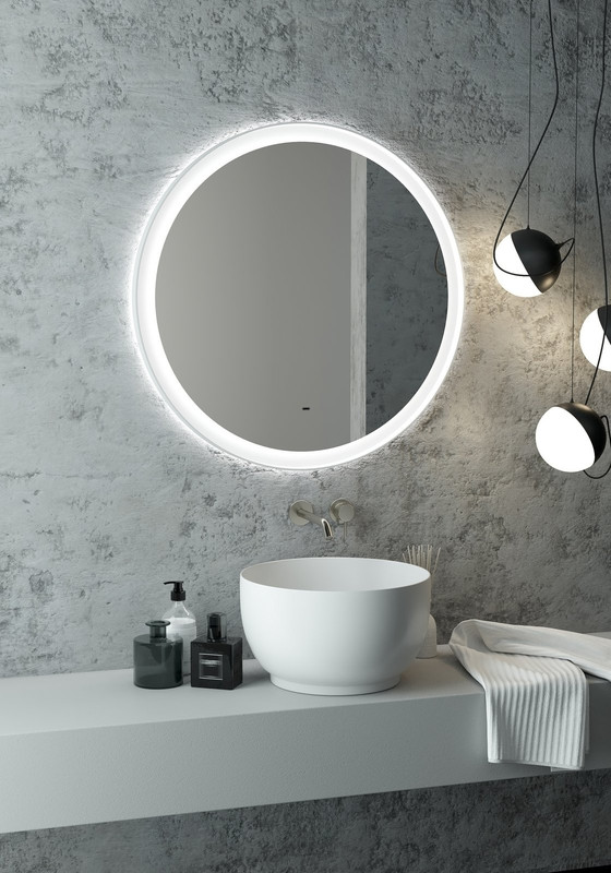 Зеркало с подсветкой “Planet white Led” D 800 с бесконтактным сенсором – это настенное зеркало нового поколения, изготовленное из полотна толщиной 4 мм от ведущего европейского производителя AGC. При изготовлении используется светодиодная лента с плотностью диодов 120 шт/м и мощностью 9,6 Вт/м, обеспечивающая яркое и равномерное свечение. “Planet white Led” D 800 с бесконтактным сенсором – это круглое зеркало для ванной шириной 80 см, высотой 80 см. Вес зеркала с упаковкой – 4,7 кг. Для управления подсветкой используется бесконтактный cенсор. Температура двойной подсветки холодная – 6000К, потребляемая мощность 29 Вт. Основа для изделия – корпус из МДФ в пленке белого цвета. Срок гарантии – 2 года.