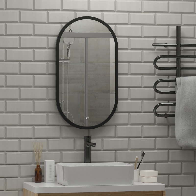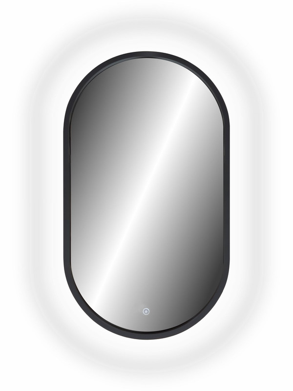 Зеркало с подсветкой “Prime Black Led” 450х800 в МДФ раме – это настенное зеркало нового поколения, изготовленное из полотна толщиной 4 мм от ведущего европейского производителя AGC. При изготовлении используется светодиодная лента с плотностью диодов 120 шт/м и мощностью 9,6 Вт/м, обеспечивающая яркое и равномерное свечение. “Prime Black Led” 450х800 в МДФ раме – это овальное зеркало для ванной шириной 45 см, высотой 80 см. Вес зеркала с упаковкой – 7,2 кг. Для управления подсветкой используется cенсор. Температура ореольной подсветки холодная – 6000К, потребляемая мощность 22 Вт. Основа для изделия – корпус из МДФ в пленке черного цвета. Срок гарантии – 2 года.