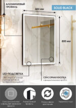 Continent Зеркало с подсветкой Solid Black 600×800 реверс, сенсор справа внизу