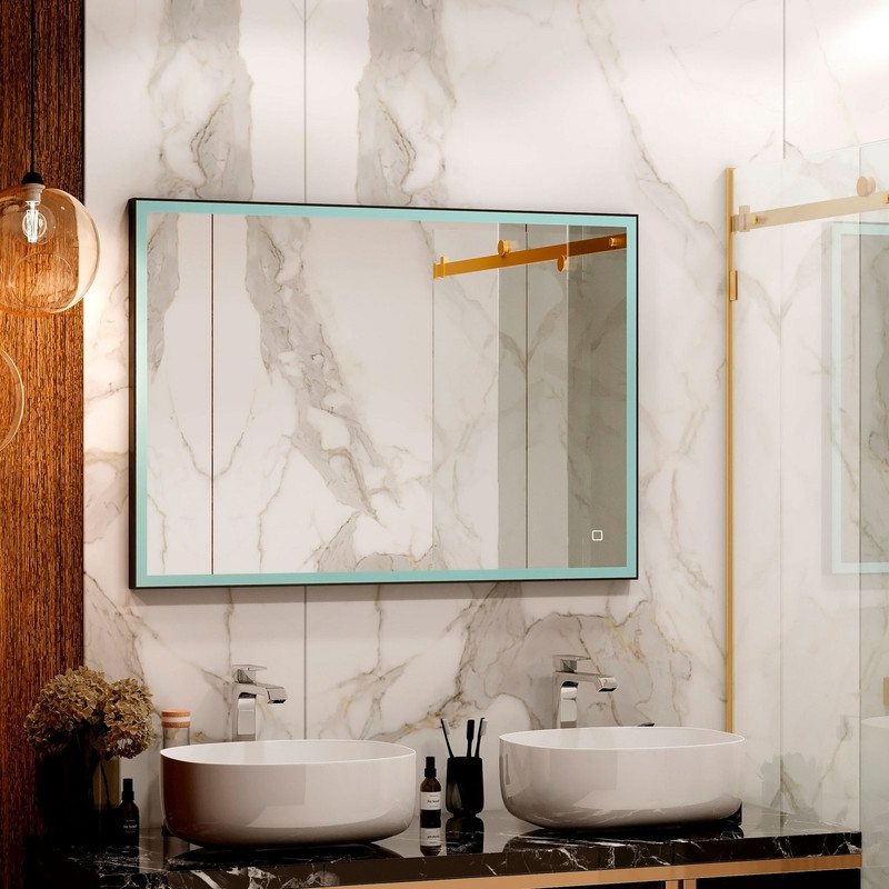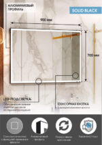 Continent Зеркало с подсветкой Solid Black 900×700 реверс, сенсор справа внизу