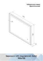 Зеркало с подсветкой Solid в алюминиевой раме с реверсивными креплениями – это настенное зеркало нового поколения для ванной комнаты, изготовленное из полотна толщиной 4 мм. Модель может крепиться как в вертикальном, так и в горизонтальном положении. При изготовлении используется светодиодная лента с плотностью диодов 120 шт/м и мощностью 9,6 Вт/м, обеспечивающая яркое и равномерное свечение. Температура внутренней подсветки холодная – 6000К. Основа для изделия – корпус из алюминия. Срок гарантии – 2 года.