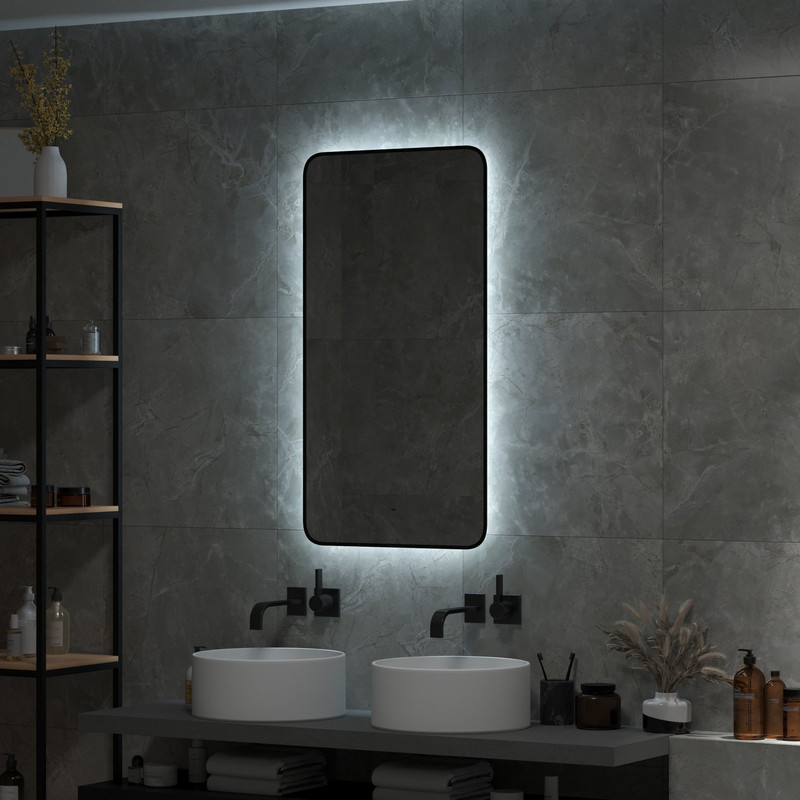Continent Зеркало с подсветкой Torry 600х1000 черная краска, бесконтактный овальный сенсор, открытая подсветка