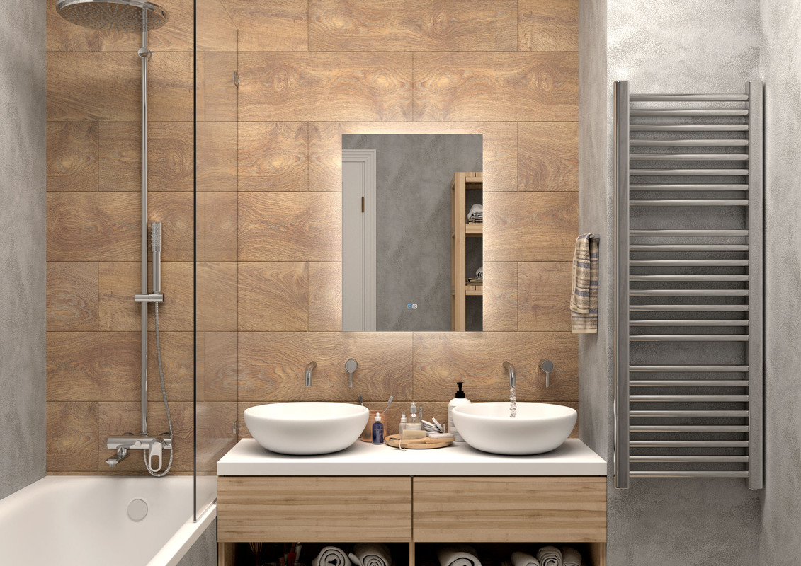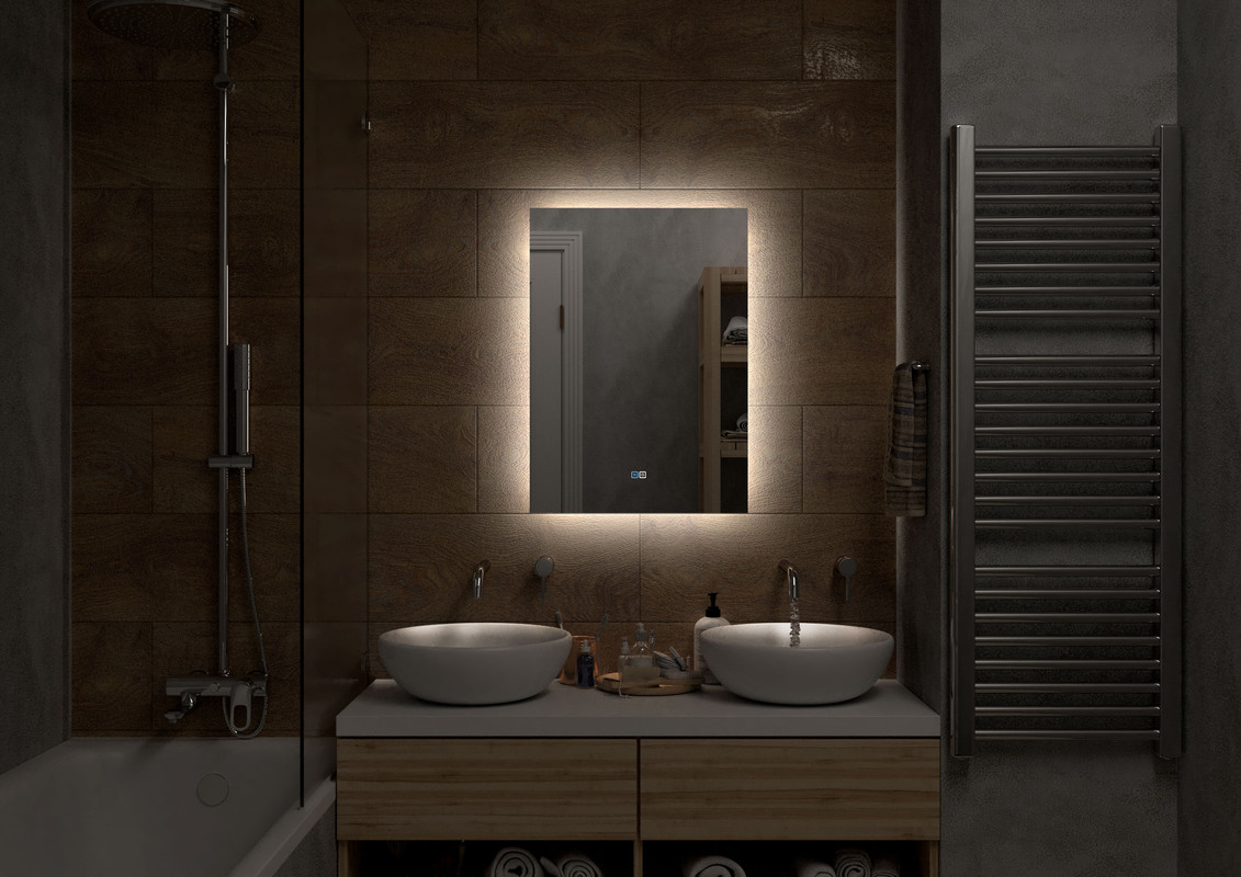 Настенное зеркало нового поколения для ванных комнат Trezhe с бесконтактным сенсором, холодной подсветкой и антизапотеванием, изготовленное из зеркального полотна толщиной 4 мм. При изготовлении используется светодиодная лента с плотностью диодов 120 шт/м и мощностью 9,6 Вт/м, обеспечивающая яркое и равномерное свечение. Основа для изделия – корпус из МДФ-рамки. Срок гарантии – 2 года.