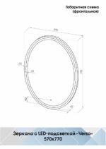 Зеркало с подсветкой “Verso Led” 570х770 – это настенное зеркало нового поколения, изготовленное из полотна толщиной 4 мм от ведущего европейского производителя AGC. При изготовлении используется светодиодная лента с плотностью диодов 120 шт/м и мощностью 9,6 Вт/м, обеспечивающая яркое и равномерное свечение. “Verso Led” 570х770 – это овальное зеркало для ванной шириной 57 см, высотой 77 см. Вес зеркала с упаковкой – 5,6 кг. Для управления подсветкой используется cенсор. Температура внутренней подсветки холодная – 6000К, потребляемая мощность 24 Вт. Основа для изделия – корпус из ударопрочного пластика белого цвета. Срок гарантии – 2 года.