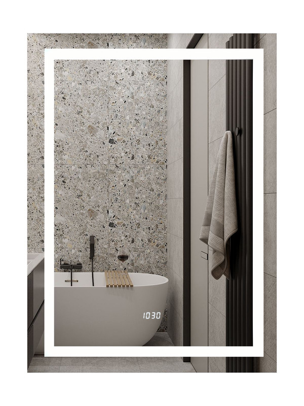Зеркало с подсветкой “Verte Led” 500х700 с часами, датчиком движения – это настенное зеркало нового поколения, изготовленное из полотна толщиной 4 мм от ведущего европейского производителя AGC. При изготовлении используется светодиодная лента с плотностью диодов 120 шт/м и мощностью 9,6 Вт/м, обеспечивающая яркое и равномерное свечение. “Verte Led” 500х700 с часами, датчиком движения – это прямоугольное зеркало для ванной шириной 50 см, высотой 70 см. Вес зеркала с упаковкой – 5,8 кг. Для управления подсветкой используется датчик движения. Температура внутренней подсветки холодная – 6000К, потребляемая мощность 22 Вт. Основа для изделия – корпус из ударопрочного пластика белого цвета. В зеркале установлены часы с индикацией температуры. Срок гарантии – 2 года.
