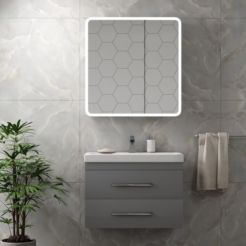 Continent Зеркальный шкаф Emotion 800х800 пластиковый фасад, 2 створки, 2 полки, датчик движения