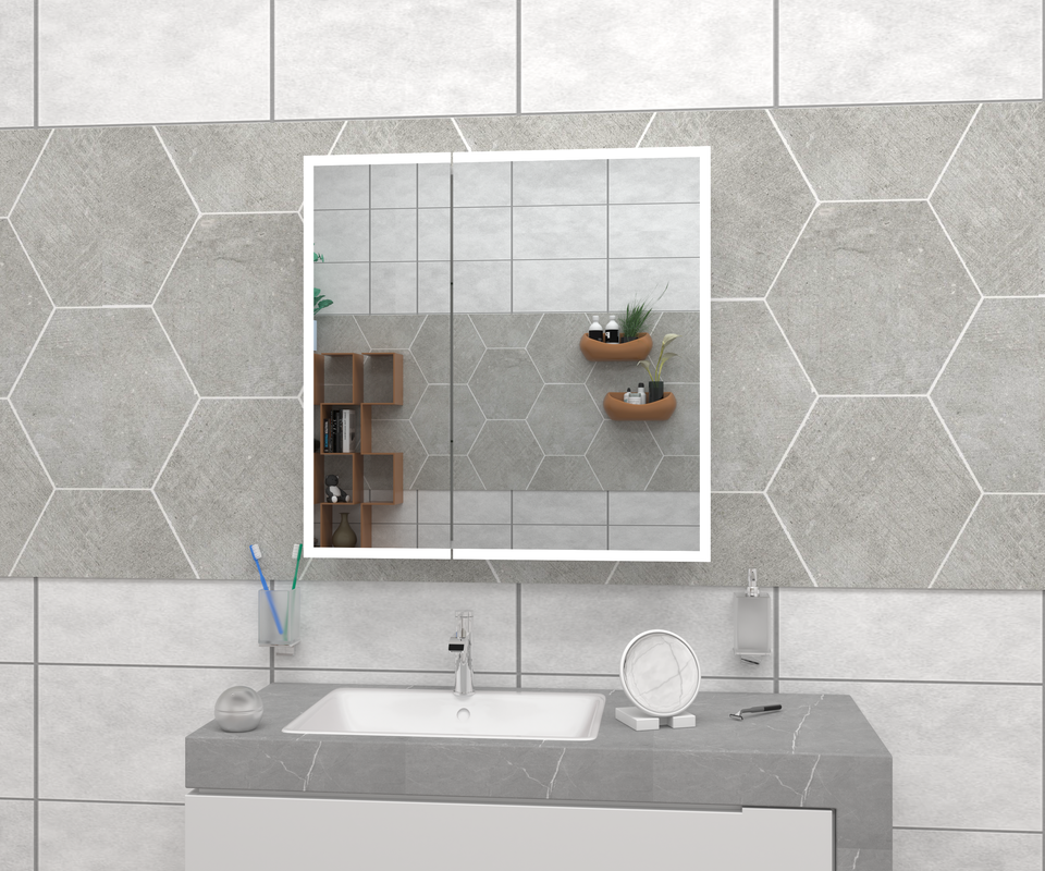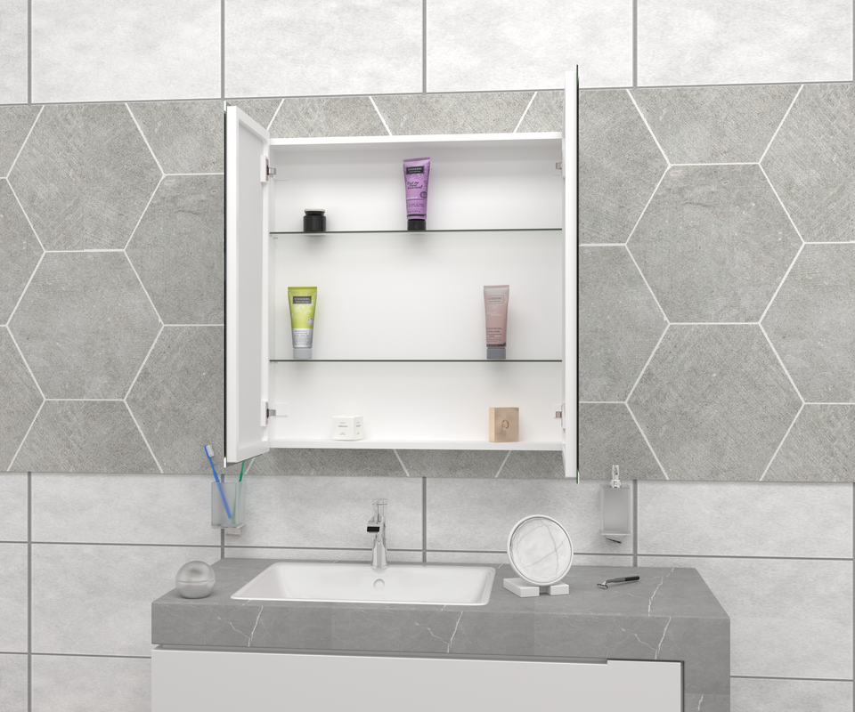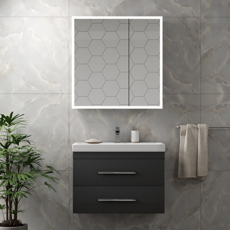 Continent Зеркальный шкаф Reflex 800х800 пластиковый фасад, 2 створки, 2 полки, датчик движения
