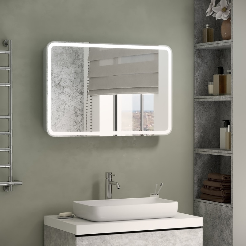 Continent Зеркальный шкаф Mirror Box 1000х800 датчик движения снизу, 2 створки, розетка