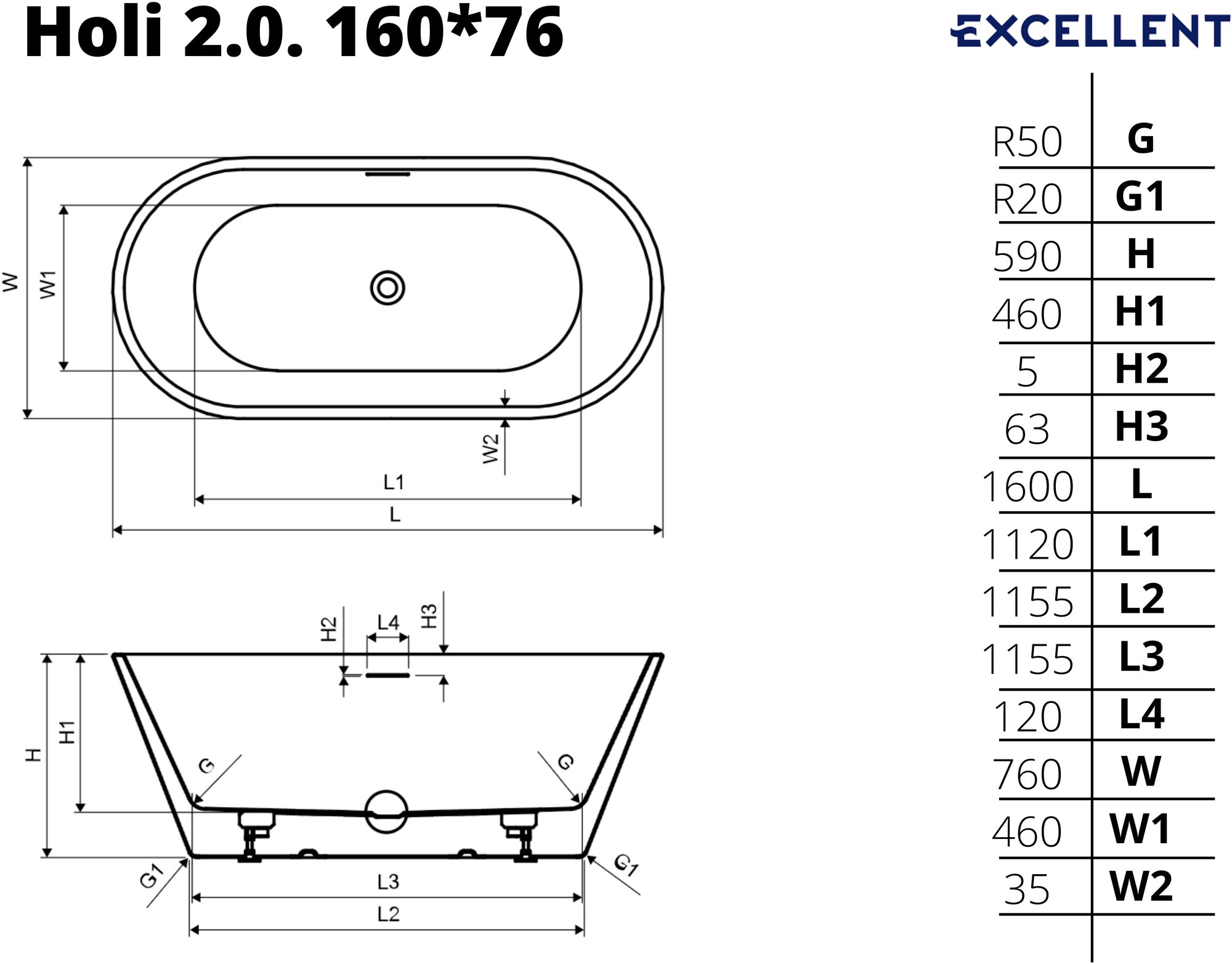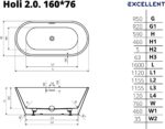 Excellent ванна акриловая HOLI 2.0 160*76