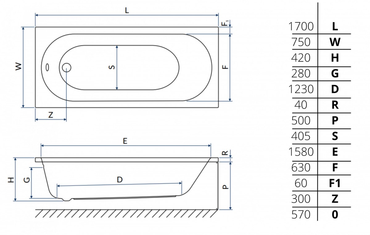 Размеры: 170×70 см, 170×75 см, 180×80 см