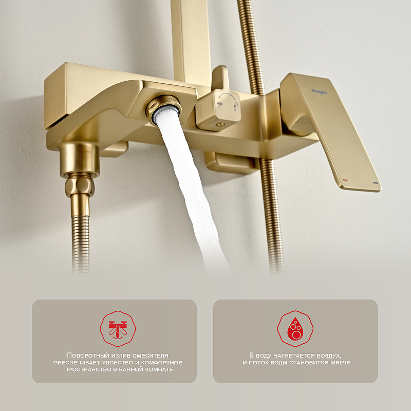Raglo R01.24.03 Душевая система для ванны сатин золотой