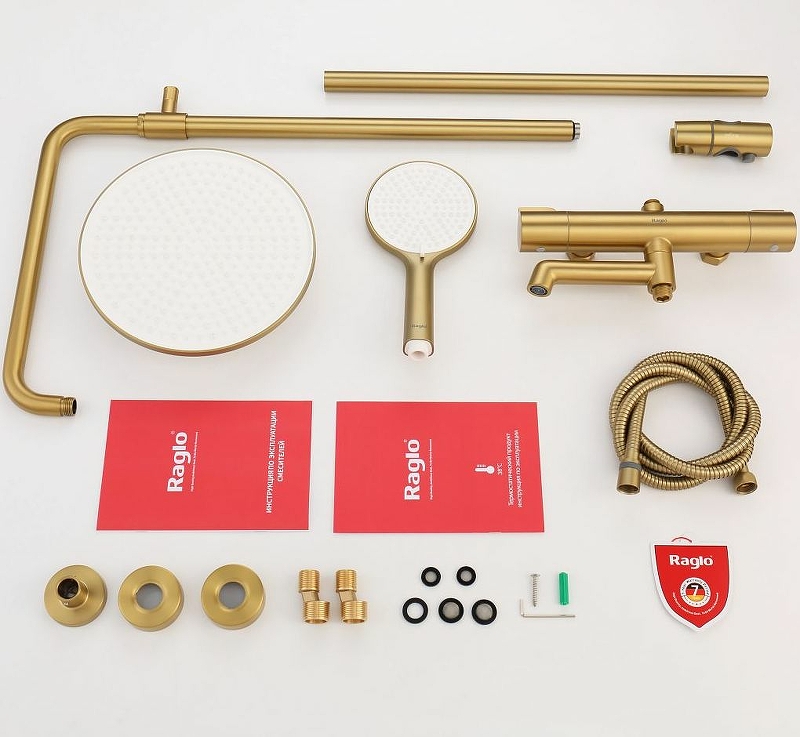 Raglo R20.26.03 Душевая система для ванны с термостатом сатин золотой