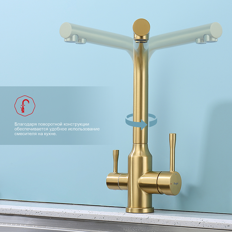 Raglo R81.61.03 Смеситель для кухни с подключением к фильтру питьевой воды сатин золотой