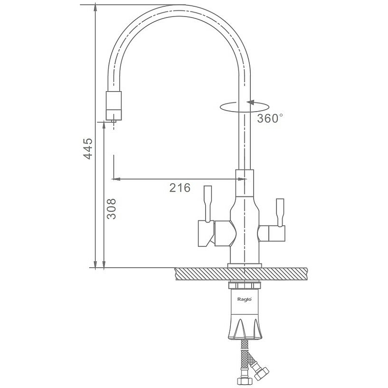 Raglo R81.64.09 Смеситель для кухни со съёмным изливом на магните и подключением фильтра питьевой воды графит