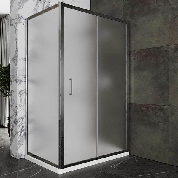Душевой уголок Roxen Caspia 55060-90C c матовым стеклом – душевое ограждение квадратной формы с раздвижными дверями. Матовое стекло не требует