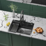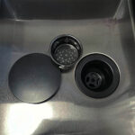 – В мойке сделано 2 заводских отверстия для смесителя и дозатора.