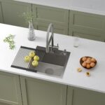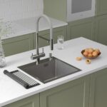 – В мойке сделано 2 заводских отверстия для смесителя и дозатора.