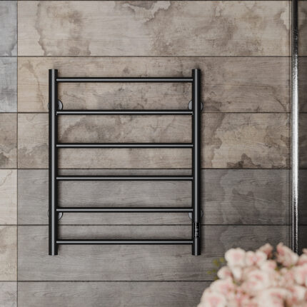 Полотенцесушитель Roxen Caspia 11070-5365B электрический – удобная и практичная модель на 6 перекладин в черном матовом цвете, актуальном для современных