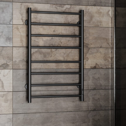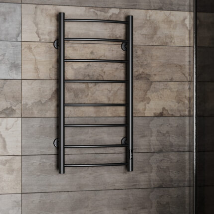 Полотенцесушитель Roxen Caspia 11070-5385B электрический – удобная и практичная модель на 8 перекладин в черном матовом цвете, актуальном для современных