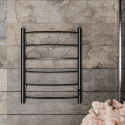 Полотенцесушитель Roxen Santi 11030-5365B электрический – удобная модель на 6 перекладин дугообразной формы в черном матовом цвете, актуальном для современных